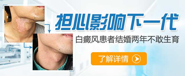 4、如果白癜风女性患者朋友在怀孕期间病情复发或者加重,一定要及时请医生为自己进行针对性的治疗,在此期间要注意保持良好的精神状态,千万不要有太大的精神压力,同时还要注意做好日常护理措施,才能尽快稳定病情,减少遗传几率。